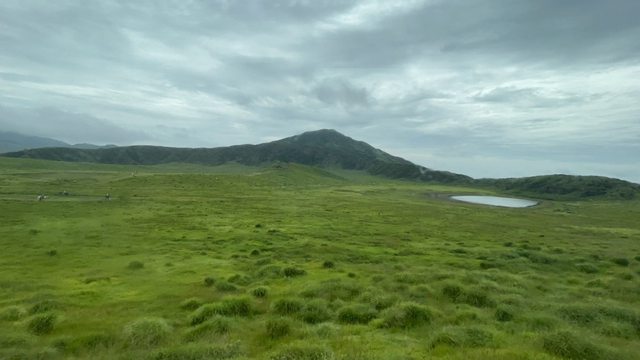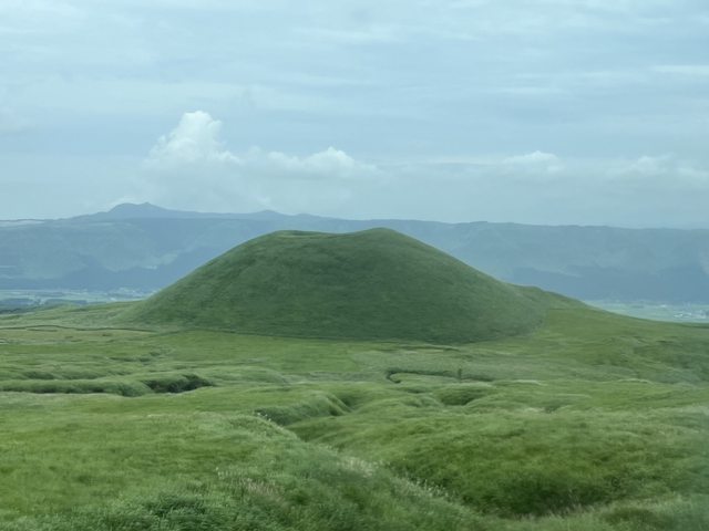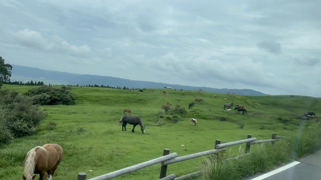 接近14:00時搭上阿蘇站前環狀線的公車經過內牧搭往阿蘇神社