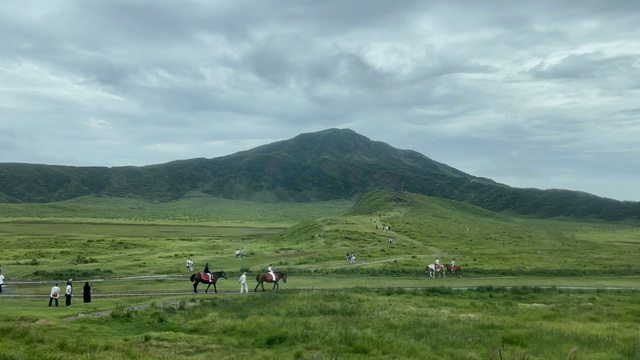 阿蘇火山口路線一天有六班車,剛好遇到週六,海內外遊客眾多,大約30多分鐘到山上的