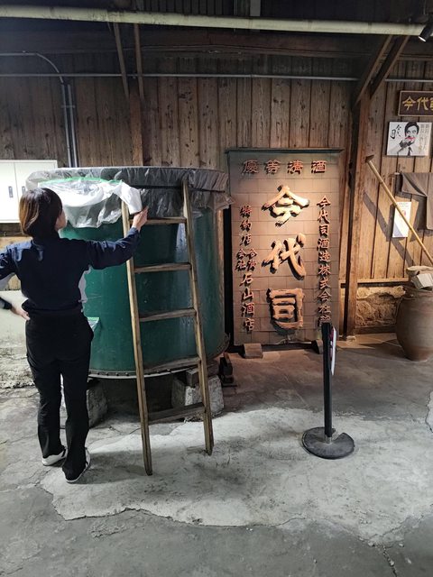 就可進去參觀,可以看到發酵桶,壓榨間整修中只有看圖片,今代司酒廠的歷史跟商品發展,精米步合與酒等級,火入殺菌的水槽。還有當地出身小川悅司漫畫老師的作品。