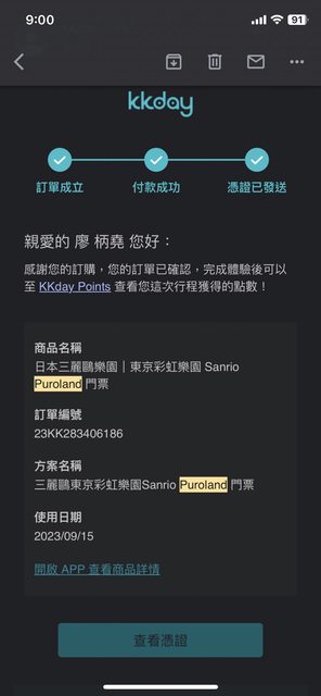 2. 物品圖片:kkday 購買,電子票卷 QR Code 憑證