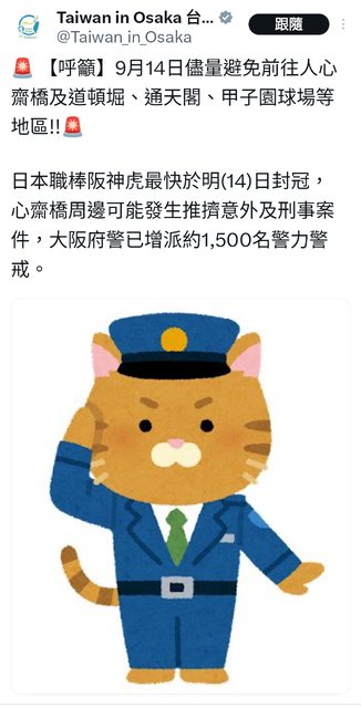 → liaoecho : 虎迷人數真的多 平日四萬人進場是正常 改去道頓堀是 09/14 00:06