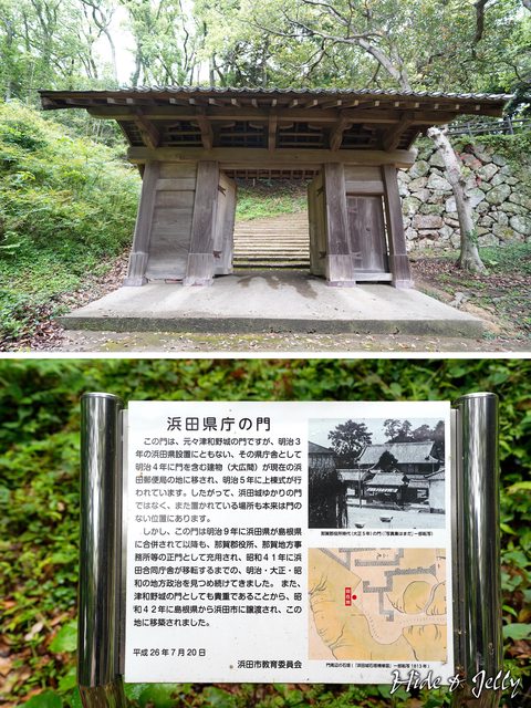 移築至浜田縣廳使用,隨著浜田縣與島根縣的合併,昭和42年此門由島根縣讓渡給浜田市