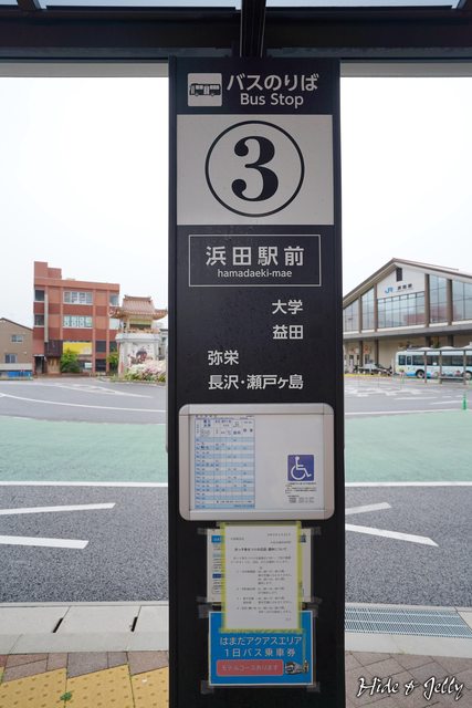 浜田城距離浜田駅約1.6公里,用走的其實也走得到,不過想要省點腳力的話,可以在浜
