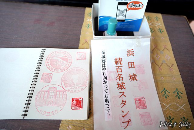 玄關中央則是續百大名城的印章。第170番浜田城印章,我們蓋下了第47顆續百大印章,