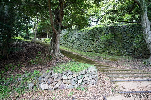 丸等城牆的石垣遺跡,整個城郭的範圍不算大,比起許多古城來說,可以說是相當嬌小可