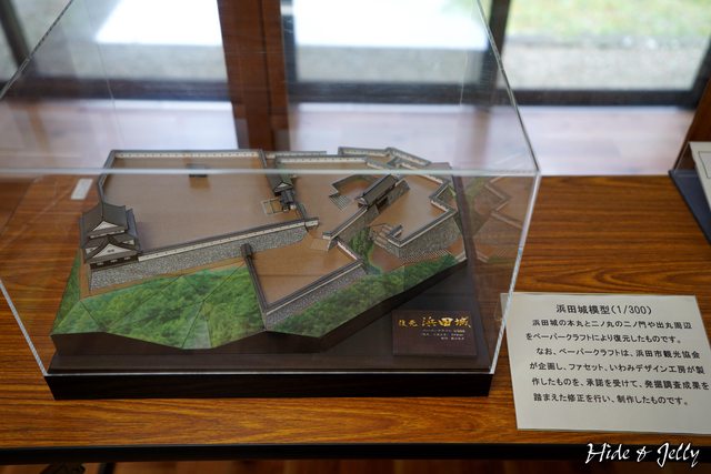 館內有浜田城天守(三重櫓)的模型,呈現正方形的浜田城天守屬於望樓式建築,並沒有華