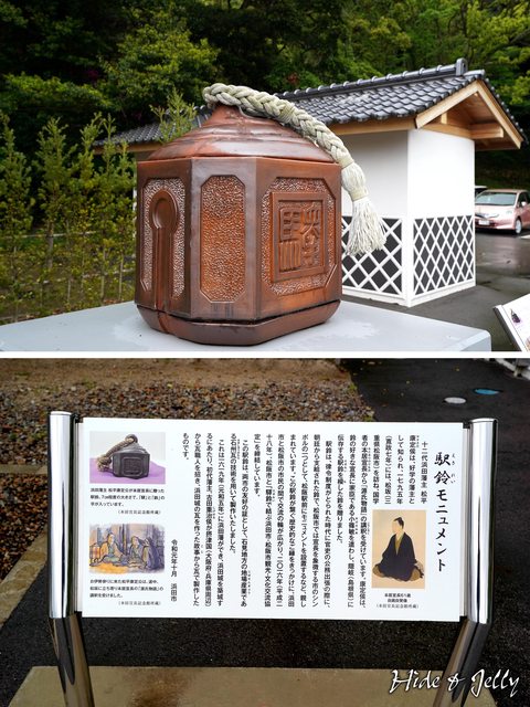 資料館旁也有古城形式的廁所,一旁有一顆有點眼熟的鈴鐺(上圖)。原來是浜田藩主松平