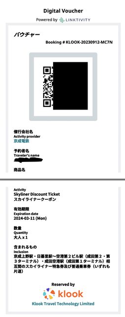 標題[讓售] klook skyliner 成田出發車票