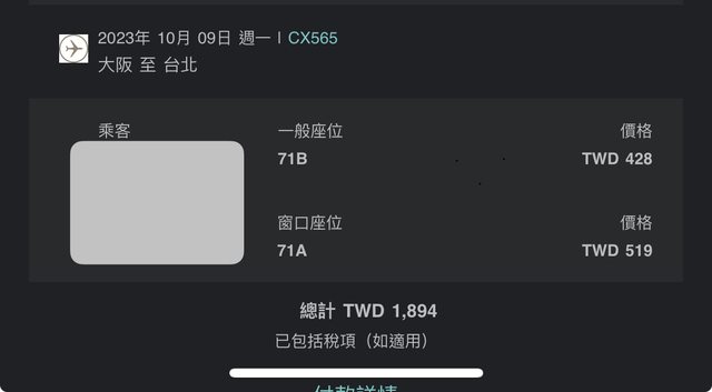 3月時已經訂購10/5-10/9桃園大阪的國泰機票
