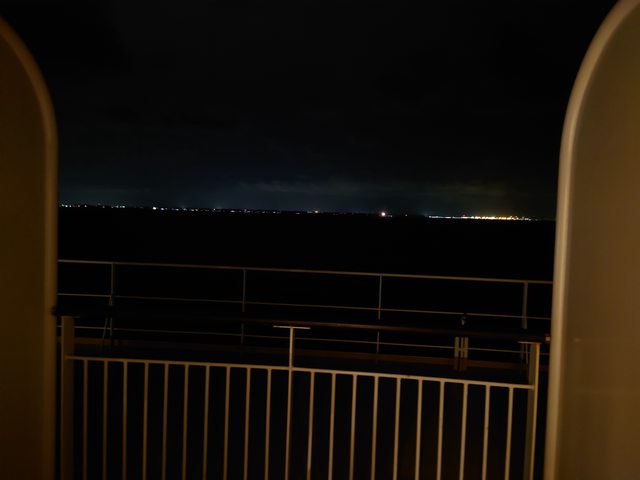 我住的房間是靠陸地側 所以在我睡覺前 打開窗戶都可以看到陸地的燈光