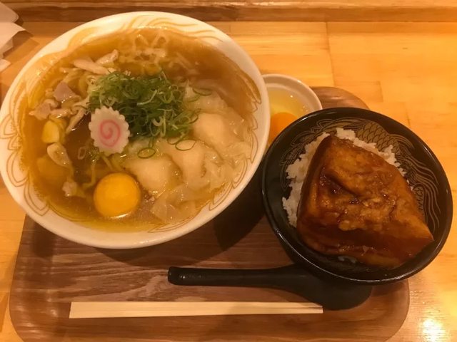 中華金雞湯海老餛飩麵、トロ豚飯(附生雞蛋)