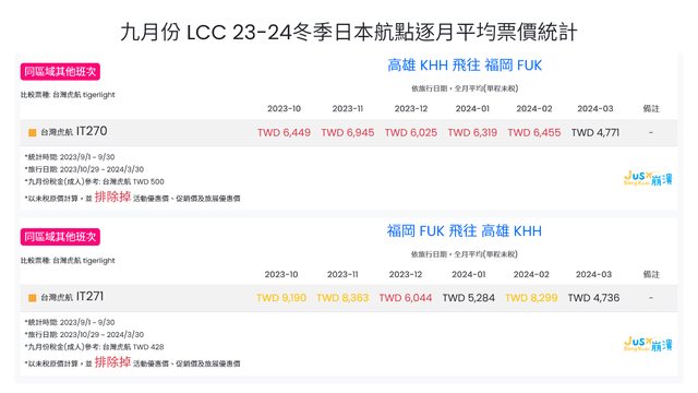標題[分享] 9月份 LCC 23冬逐月平均票價統計