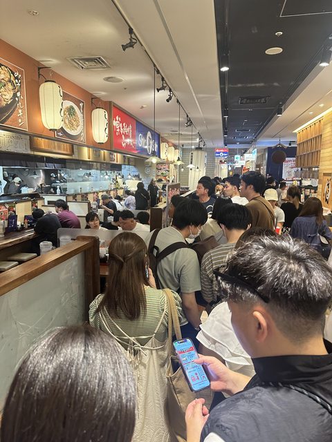 逛到下午三點才去吃ShinShin拉麵,我們吃的是KITTE博多店,還是要排個30分鐘。