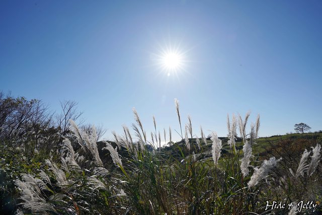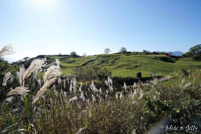 主郭部比起內館,芒草更多了。芒草的前方,真的很像抹茶麻糬耶!(突然想吃)