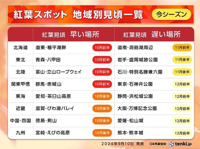 推 WRD : tenki沒準過,預測都偏早,去年層雲峽發佈見頃都第 09/11 19:58
