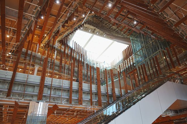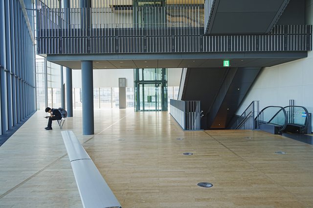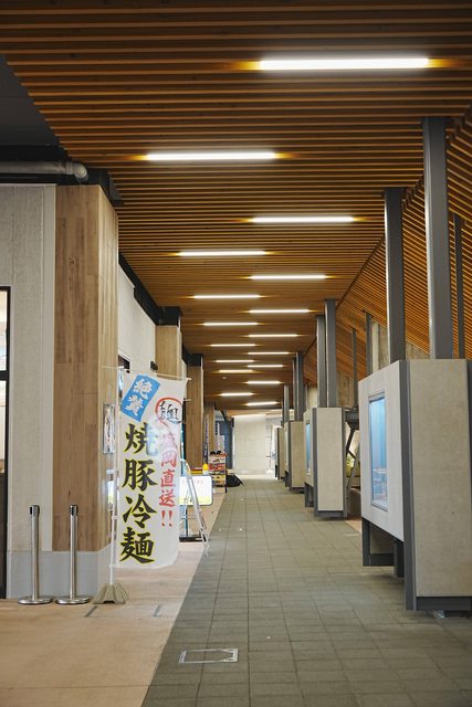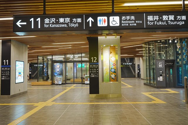 也許是新幹線設站的緣故,小松站的建築體頗大,底下為木造與清水混凝土的混搭風格,