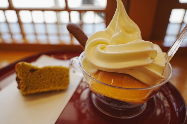 夏日限定的霜淇淋布丁套組,還會附贈一小塊蛋糕