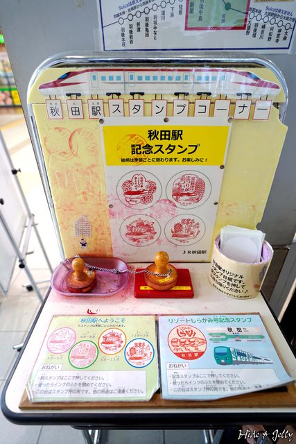 秋田駅的紀念章,則依照四個季節,有不一樣的圖案,我們應該只剩下6~8月的沒有蓋到