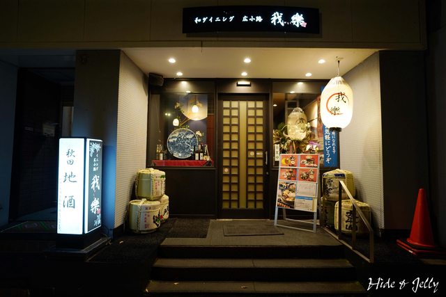 。「我樂」的門面有點高檔居酒屋風情,門口還有許多秋田酒的大酒甕。