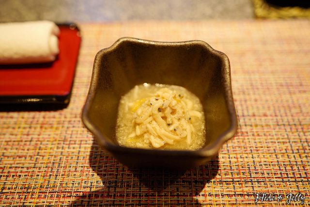 首先,端上桌的是小鉢,以蛋花勾芡為基底,加上吻仔魚的冷麵,相當開胃。