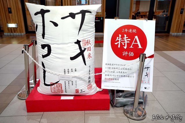 中央走廊上還有秋田新品種米「サキホコレ」(早穗)的宣傳,據說是從12萬株的稻苗中挑
