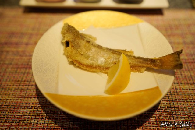 接著是今日的「ハタハタ唐揚げ」(炸沙魚)。大約手掌長度的小魚,整條炸的黃金色澤,