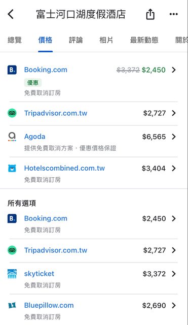 : (只跟訂房平台互比,最後下訂前會去旅館官網確認是否便宜。)