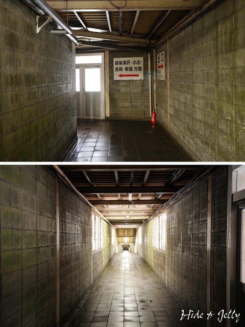 從上行月台走到剪票口,也要經過一段長廊,雖然打掃得很乾淨,但冬季的濕氣,仍然讓