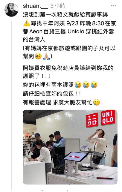 → shanyaochung: 失主沒有阿姨的護照,所以阿姨身上有兩本護照 09/24 23:20
