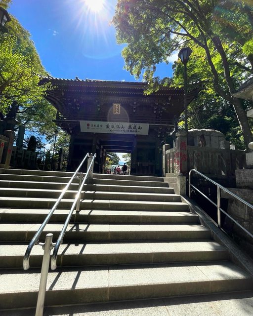 女坂其實不太適合推輪椅,之前看google map 的時候,沒有注意到弟弟推到太累,換我接著推,最後我們只到達了權現茶屋,在椅子上休息一下,我與弟弟輪流去藥王院参拜。