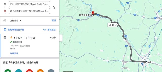 古川站~ 鳴子溫泉車站 這段顯示這樣
