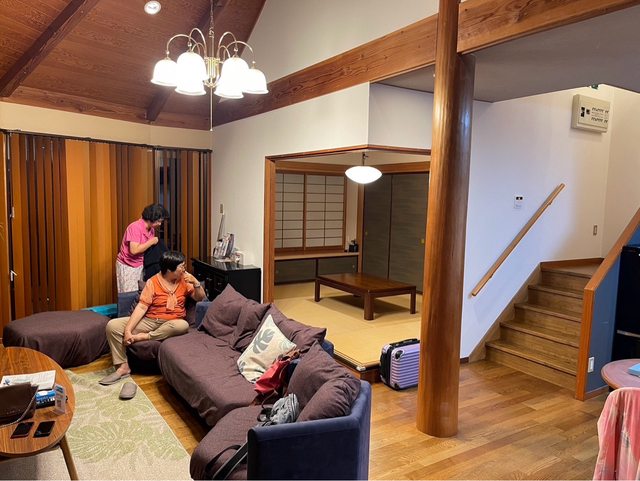 這間木屋也讓我完全改觀,有夠大而且不貴,一家人在客廳打滾休息還有溫泉