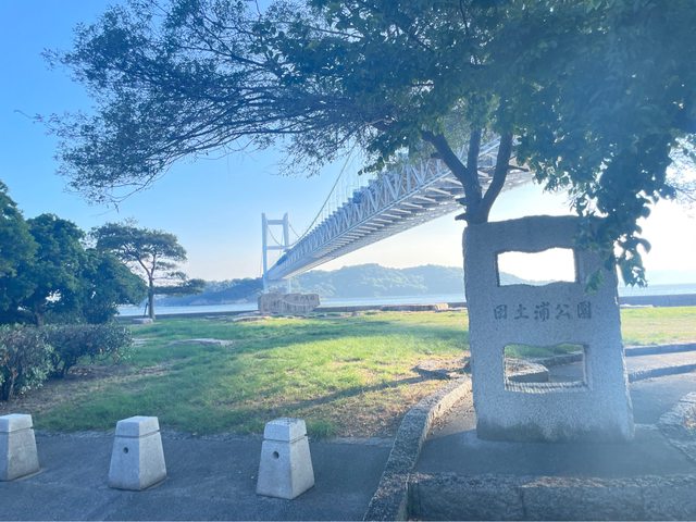 從咖啡廳走到田土浦坐神社是對著瀨戶大橋的方向走