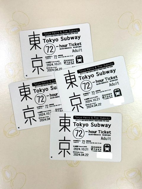 1. 讓售品項:東京72小時地鐵票(可使用東京metro&都營)*4張