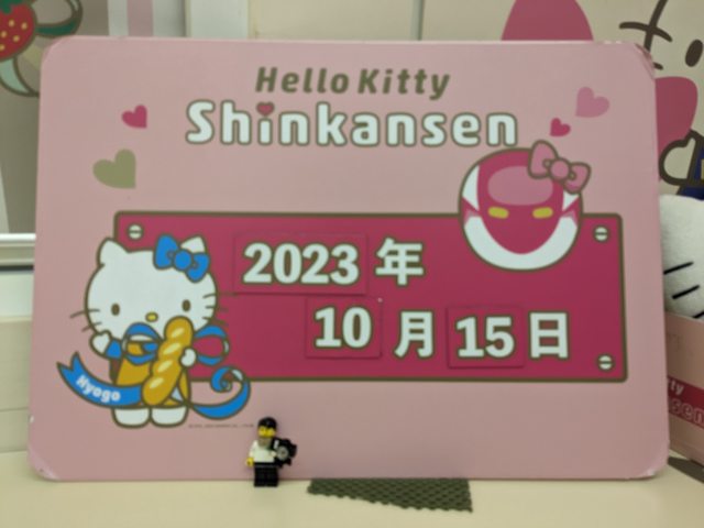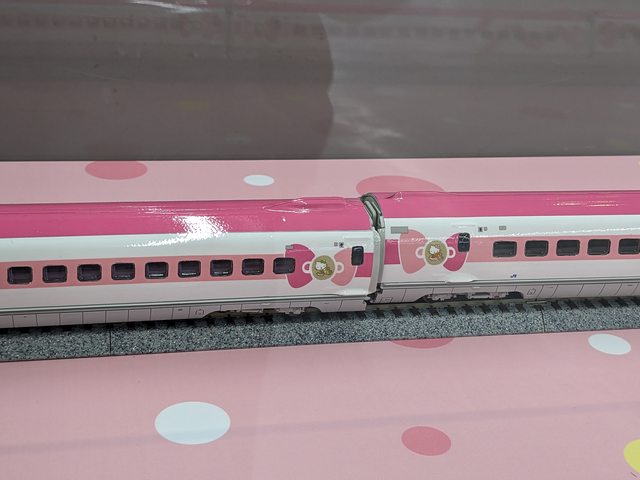 岡山站有擺一組無嘴貓新幹線,但細看沒擺好有出軌