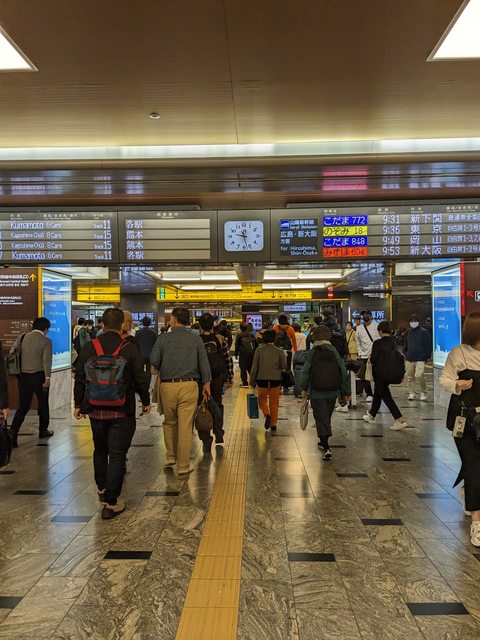 到博多9:26,一下車馬上在博多車站門口拍照,再趕搭9:36的新幹線去大阪