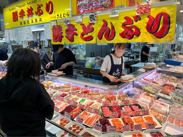 早上在飯店用完餐。先走去在車站斜對面的和商市場逛逛,這裡可以挑選自己喜愛的海鮮
