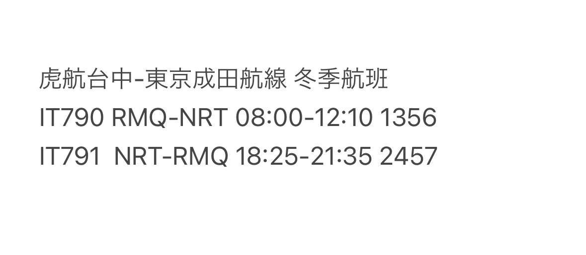 推 k123123 : 因為冬季班表一三五六成田就是排串飛台中,沒飛機 10/09 12:26