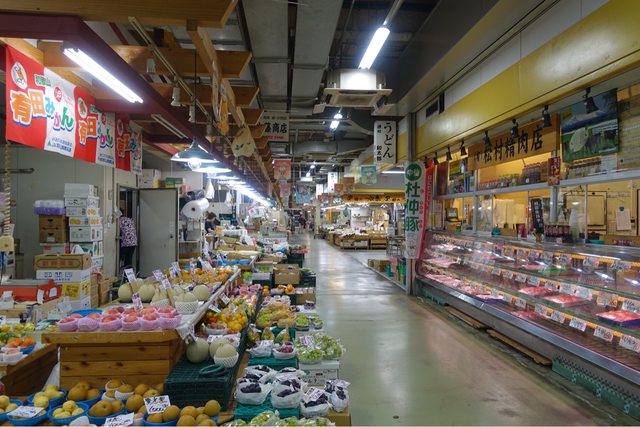 市場海鮮攤沒有腥味,後方都有冷凍庫,地上乾乾的,還有冷氣。晃了一圈買了秋田產蘋