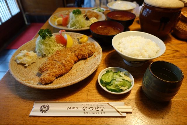 鐘走到門口,已有一位客人等待。原味豬排炸的很酥脆,宮城米飯很香,個人喜歡黃芥末