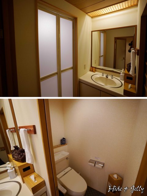 玄關的左側有門,旁邊還有一尊木芥子,門裡面是乾濕分離的衛浴,等等再開門看看。