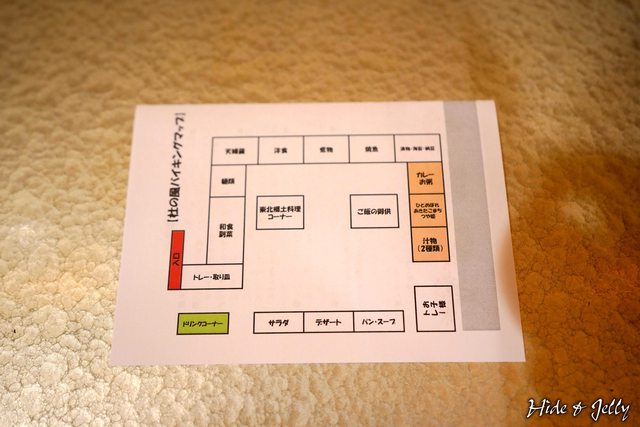 用餐的座位與晚餐相同。還怕客人找不到目標,桌上擺放著"料理地圖",簡單的圖示告訴