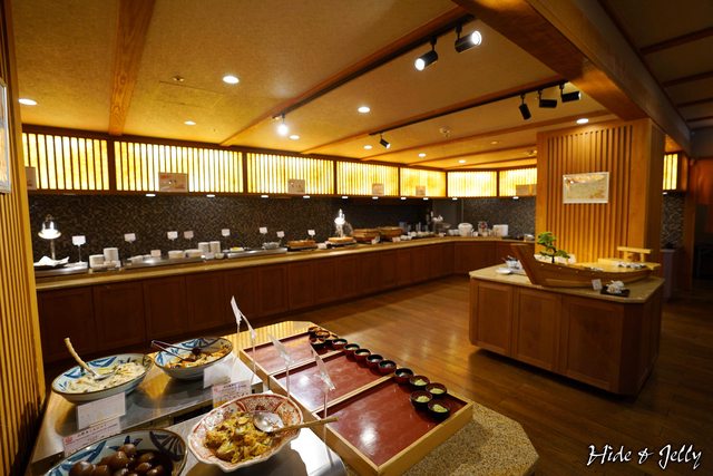 「湯元 吉祥」的早餐超級Dormy的,寬廣的自助吧區,連柱子旁的空間都不放過,擺放