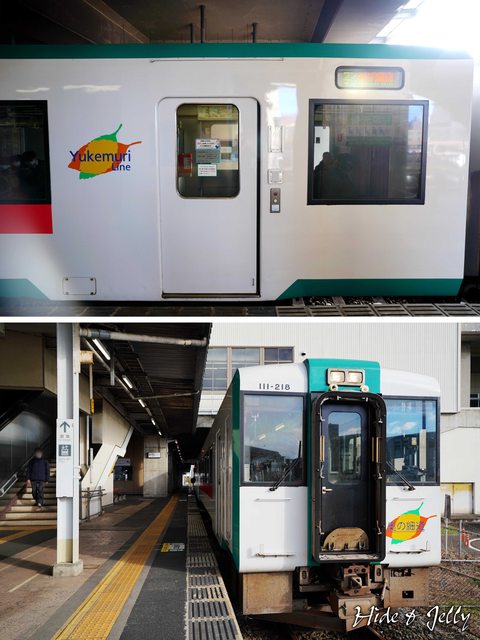 陸羽線的普通列車,雖然是普通列車但車上也有「Yukemuri Line」(湯煙号)的塗裝,車
