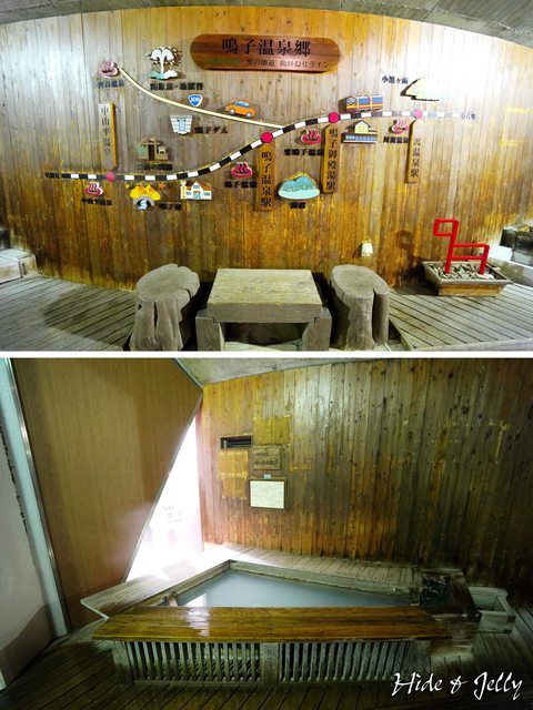 來看看車站外觀,中央有很可愛的鳴子溫泉鄉車站地圖(上圖),兩旁則是與旅館相同的硫