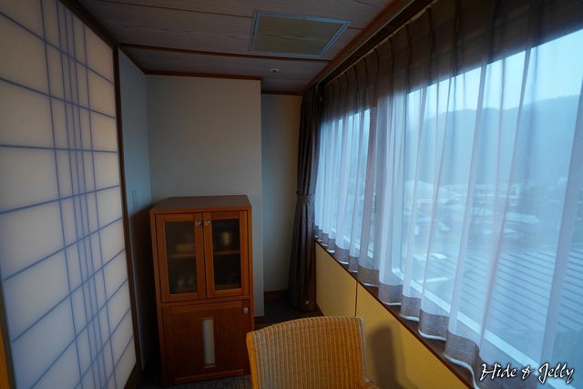 房內主要的起居室約為8疊榻榻米的空間,沒有太多餘的傢俱,空間蠻寬廣的。前方的拉