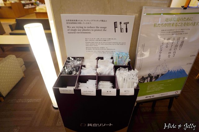 大廳中央的長梯下方,則有備品耗材區,因應環保,旅館已不主動提供盥洗備品,但真的