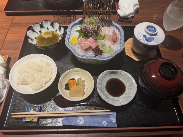 食,就決定直接在旅館餐廳用餐就好,選擇的是3000円的生魚片定食,還有600円的柚子