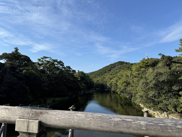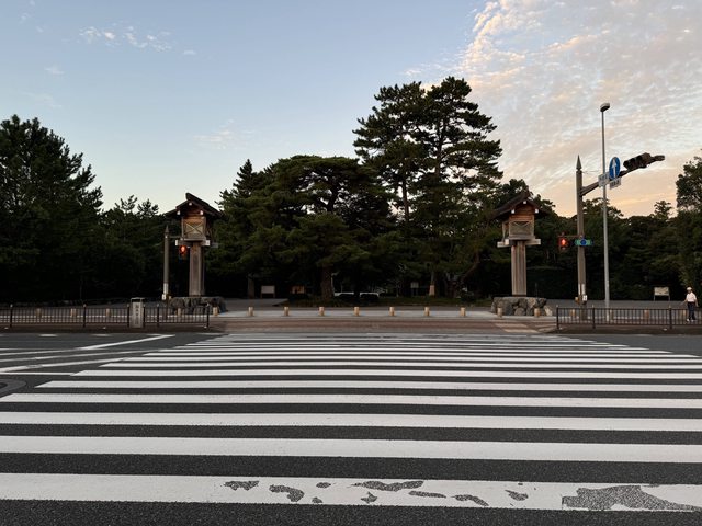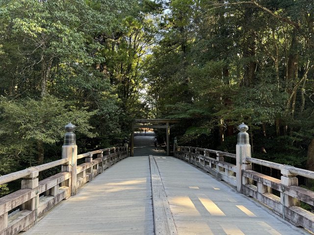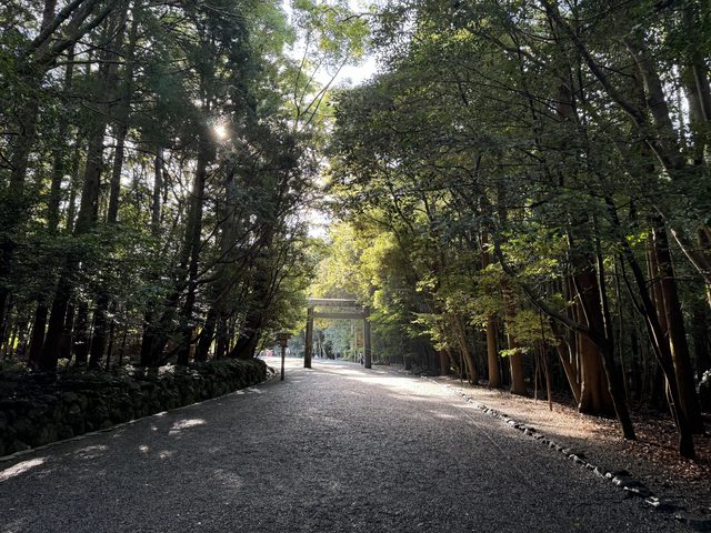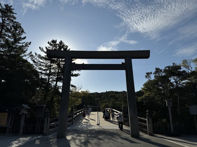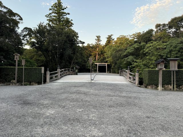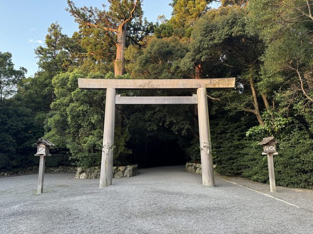 0530出發前往外宮,一路上只有零星幾組也是參拜的人,穿過鳥居進入神社境