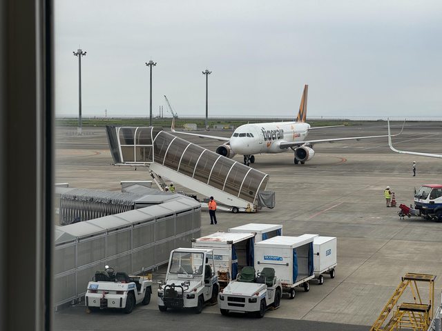 機場停妥下機,並沒有空橋是直接走地面到航廈,原本想說比預期早到,結果入境審查
